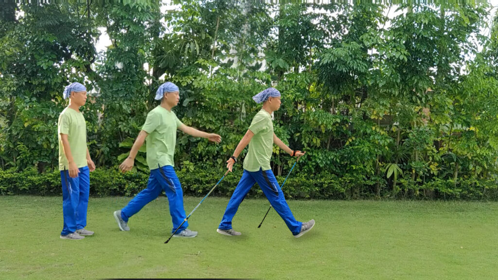 4.明顯感覺全身肌肉參與北歐式健走動作。