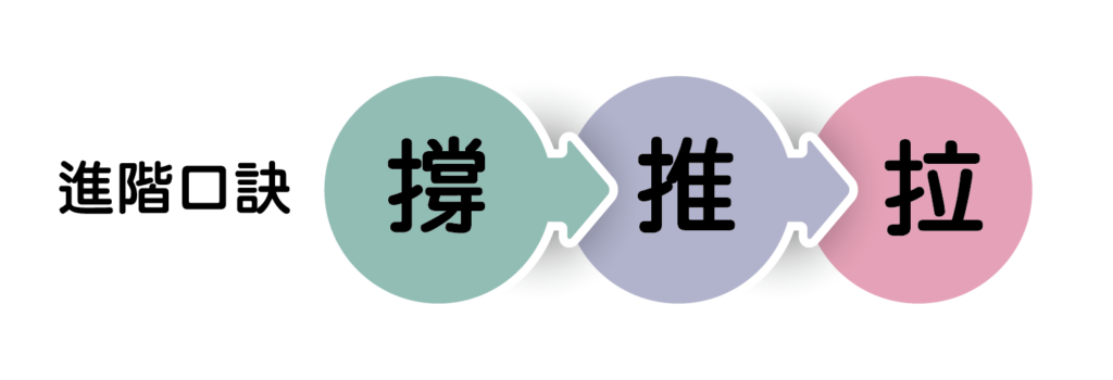 5.身體前進的力量,來自於「跨大步伐」及「手臂推動健走杖」的動力。